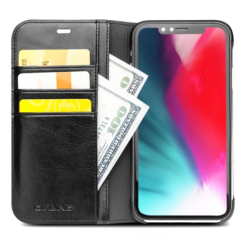 Skydda din iPhone XR med elegant och trendig stil med det här Qialino klassiskt plånboksfodral i läder. Ha alltid dina viktiga kort och dina kontanter nära till hands i fodralets innerfack.