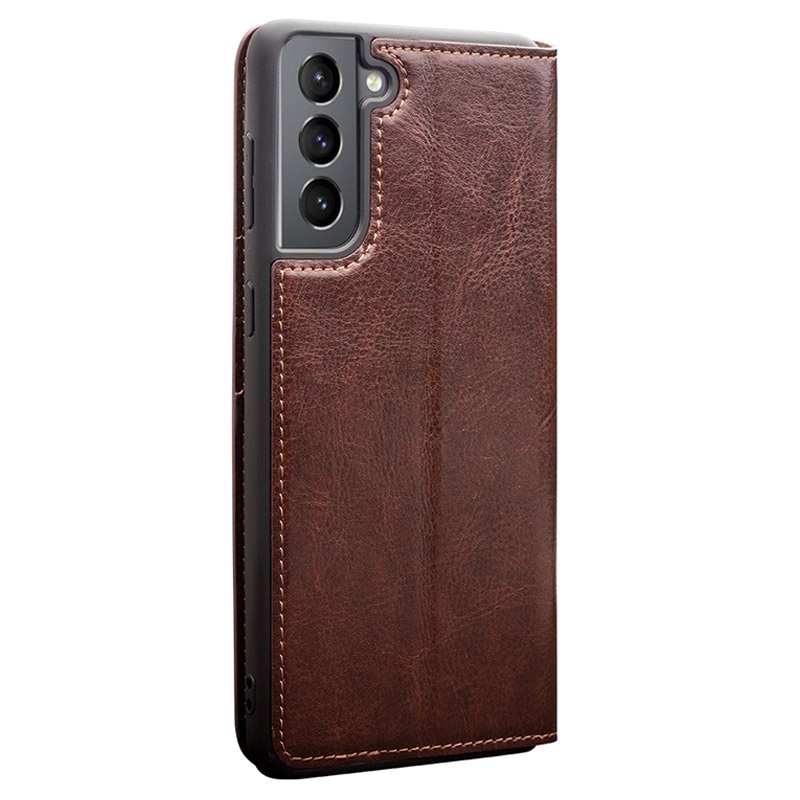 Qialino Classic Läder Plånboksfodral till Samsung Galaxy S21 5G