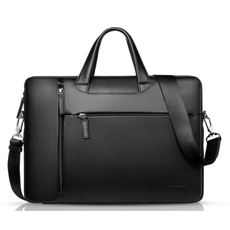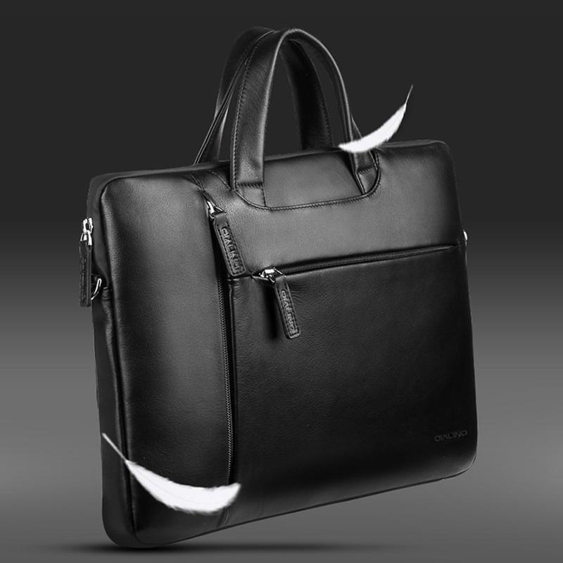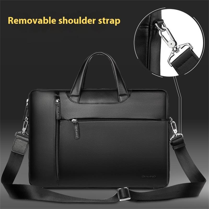 Qialino Laptopväska i äkta läder - Premiumfodral i koskinn med avtagbar rem och skydd för flera fack