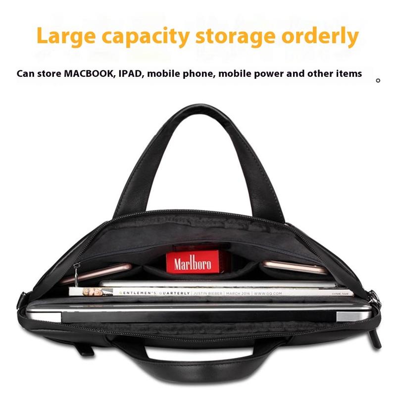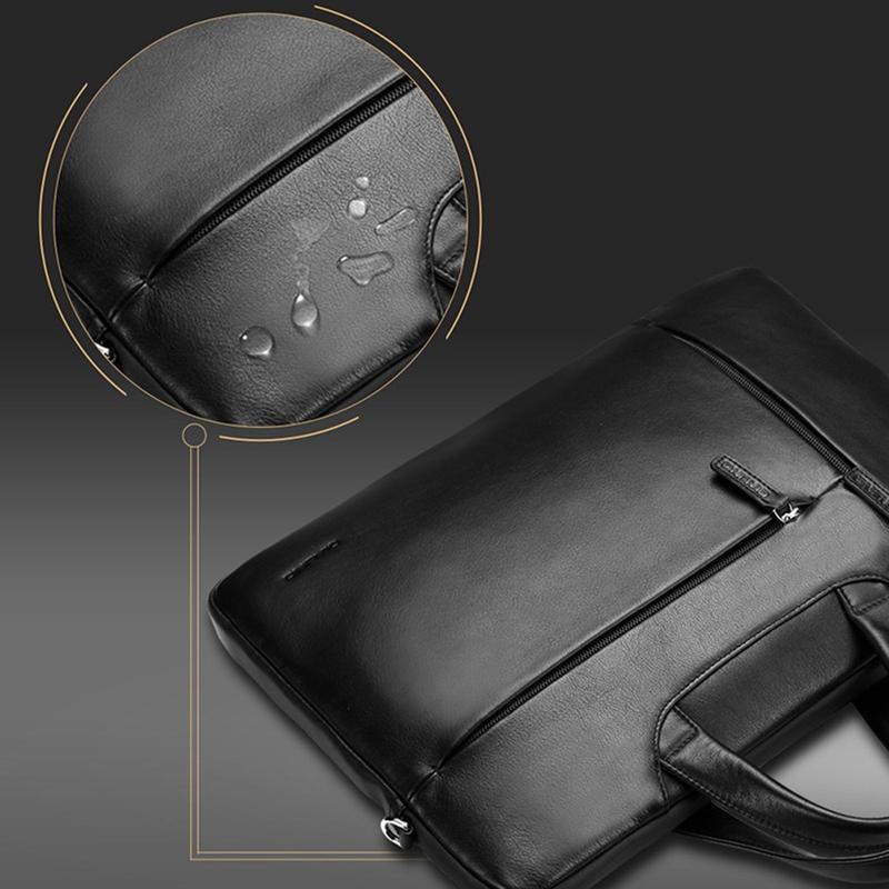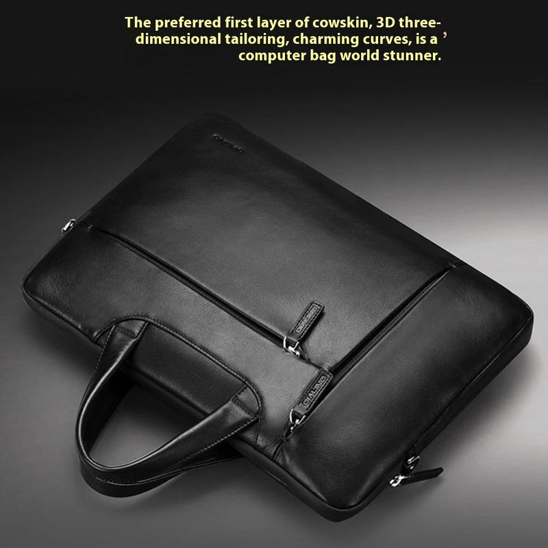 Ge din bärbara dator en förstklassig behandling med denna Qialino laptopväska, tillverkad av toppkornigt kohud som klarar av vardagens stänk och samtidigt ser professionellt ut. Fodret i plyschfleece och pärlbomull skyddar enheter på upp till 13 tum och den avtagbara axelremmen gör att du kan växla mellan portfölj och cross-body-väska på några sekunder. Flera innerfickor håller ordning på telefon, powerbank och anteckningsbok för ett smidigt resande.