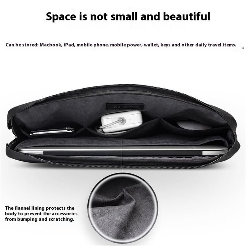 Res, pendla eller gå till lektionen med total sinnesfrid: Qialino 13-tums laptopfodral kombinerar vattenavvisande nanotextil med stötdämpande vaddering och en avtagbar handtagsrem. Fodralet mäter 25 × 36,5 cm och kan enkelt stoppas ner i ryggsäcken, men har tillräckligt med utrymme för en bärbar dator, surfplatta, telefon och laddare. En dold dragkedja och läderförstärkning ger ett extra lager av säkerhet och stil i vardagen.