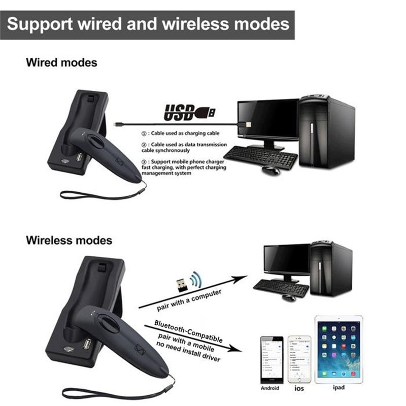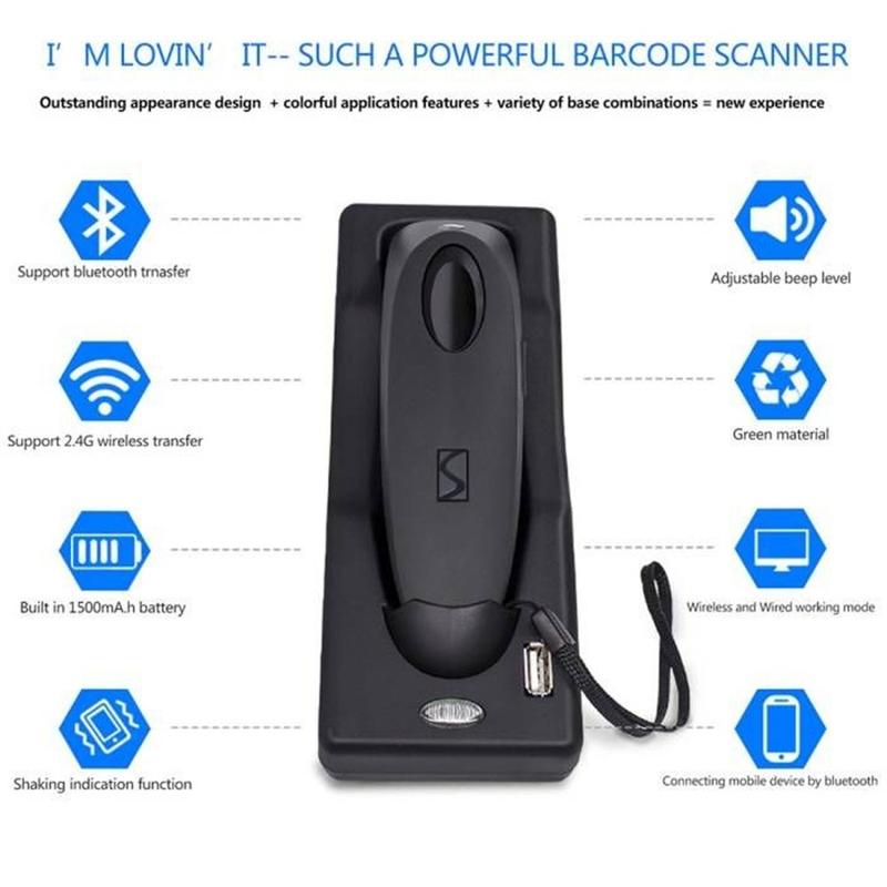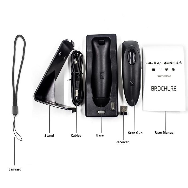 R40 Trådlös 2D-streckkodsläsare - Bluetooth 4.0 & 2.4GHz QR-kodläsare med laddningsstation, 1500 skanningar/s