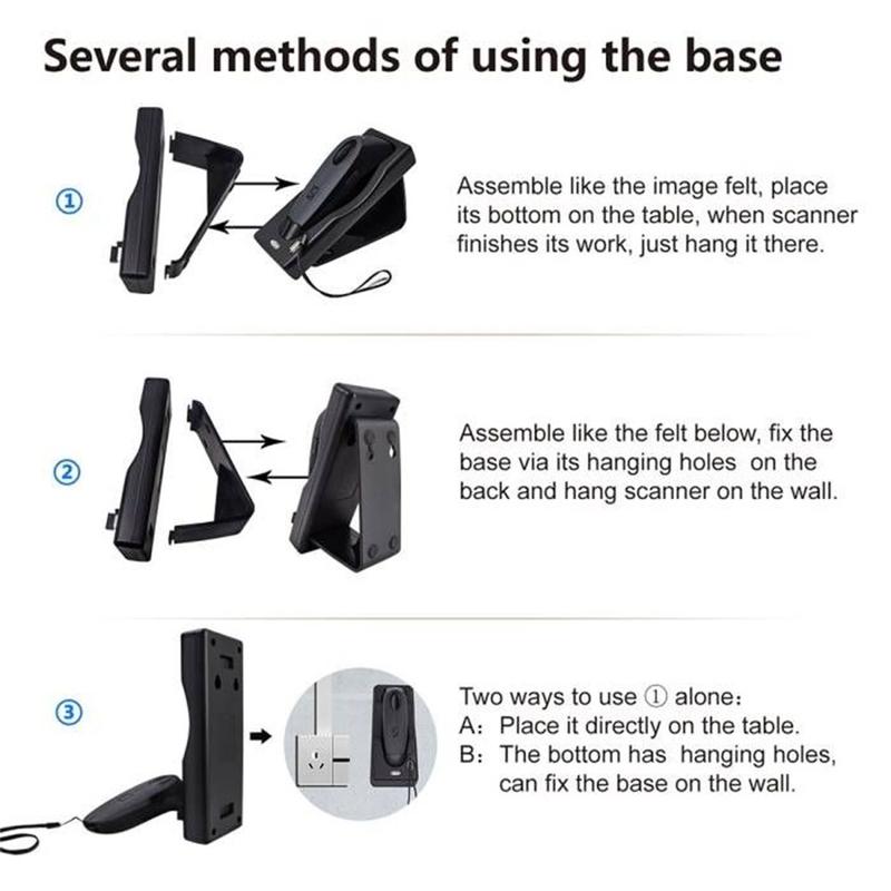 Batteriet på 1000 mAh ger upp till 20 timmars kontinuerlig användning, medan den medföljande laddningsbasen stöder både handhållen och fast positionerad scanning.