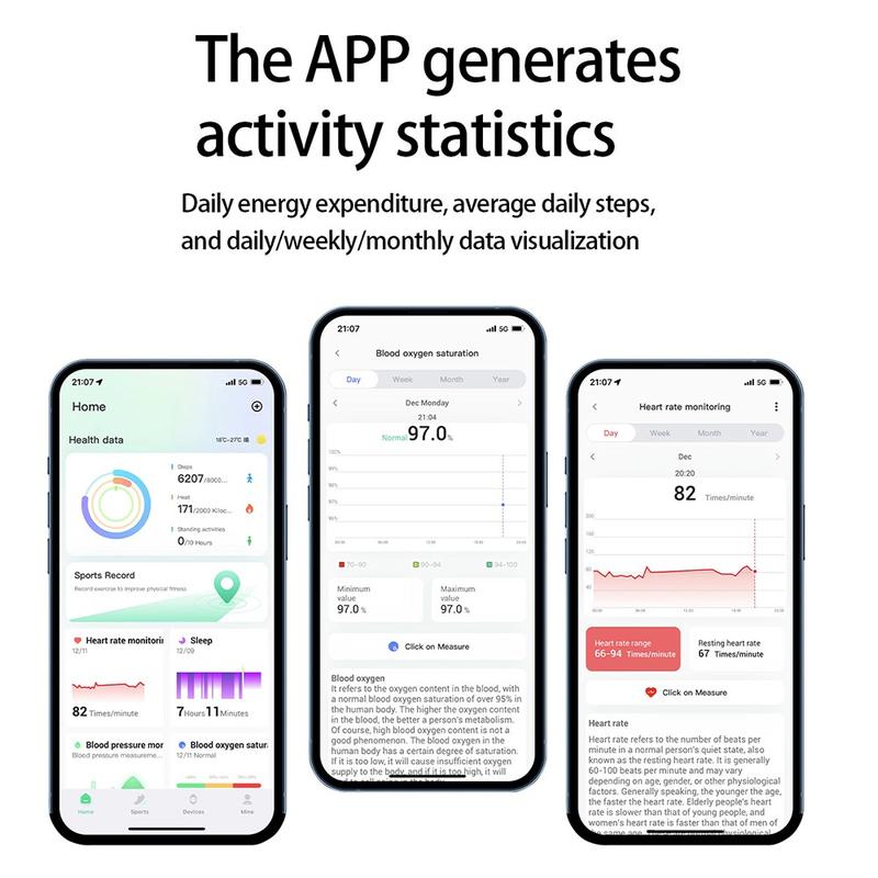 - Omfattande hälsoövervakning - Övervakar hjärtfrekvens, syrehalt i blodet, sömn och träningsstatistik.