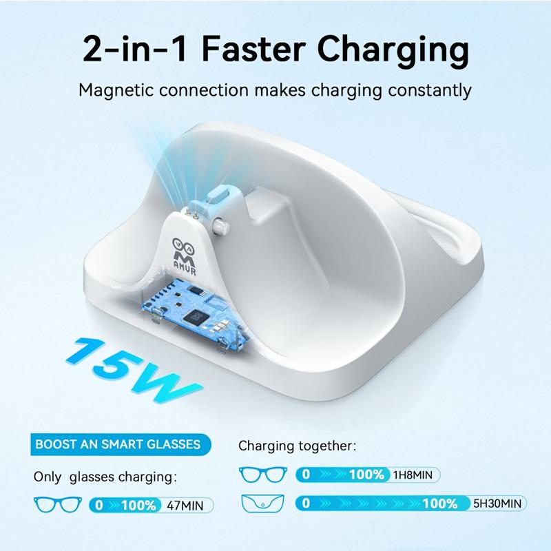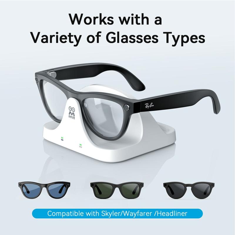 AMVR CD3 ger enkel magnetisk inriktning, dubbel snabbladdning, statusåterkoppling i realtid och starkt säkerhetsskydd, vilket gör den till den perfekta laddningslösningen för Ray-Ban Meta AI Glasses-användare.