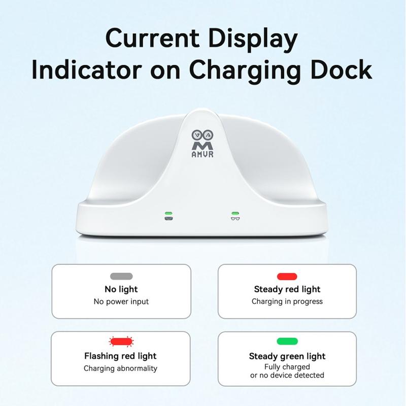 Placera helt enkelt dina glasögon eller ditt fodral på dockningsstationen - dess magnetiska anslutning leder dem till rätt laddningsposition direkt. Stöder blind inriktning för enkel daglig användning.