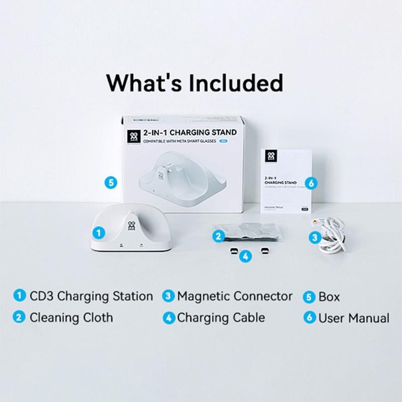 AMVR CD3 Magnetisk 2-i-1 snabbladdningsdocka för Ray-Ban Meta AI-glasögon Gen 1, Gen 2