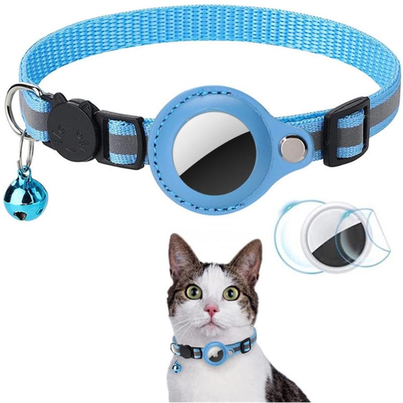 Reflekterande halsband för husdjur med AirTag 1/2-hållare och klocka - lämpligt för katter och små hundar