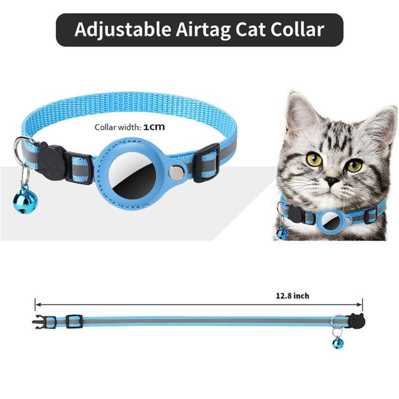 Reflekterande halsband för husdjur med AirTag 1/2-hållare och klocka - lämpligt för katter och små hundar