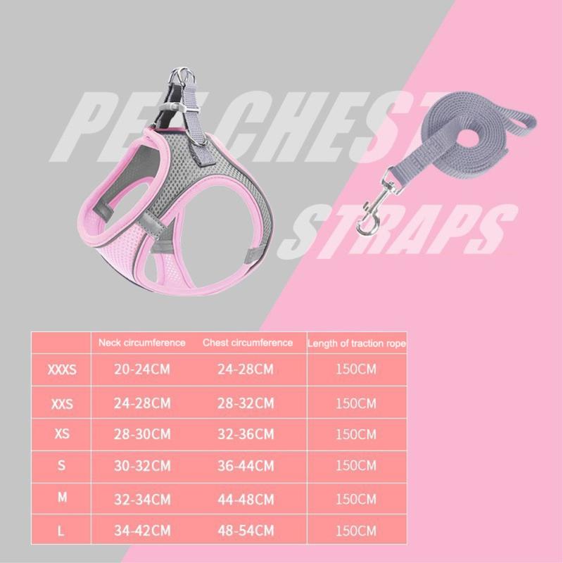 Reflekterande katt-/hundsele med koppel / väst i ventilerande mesh för husdjur