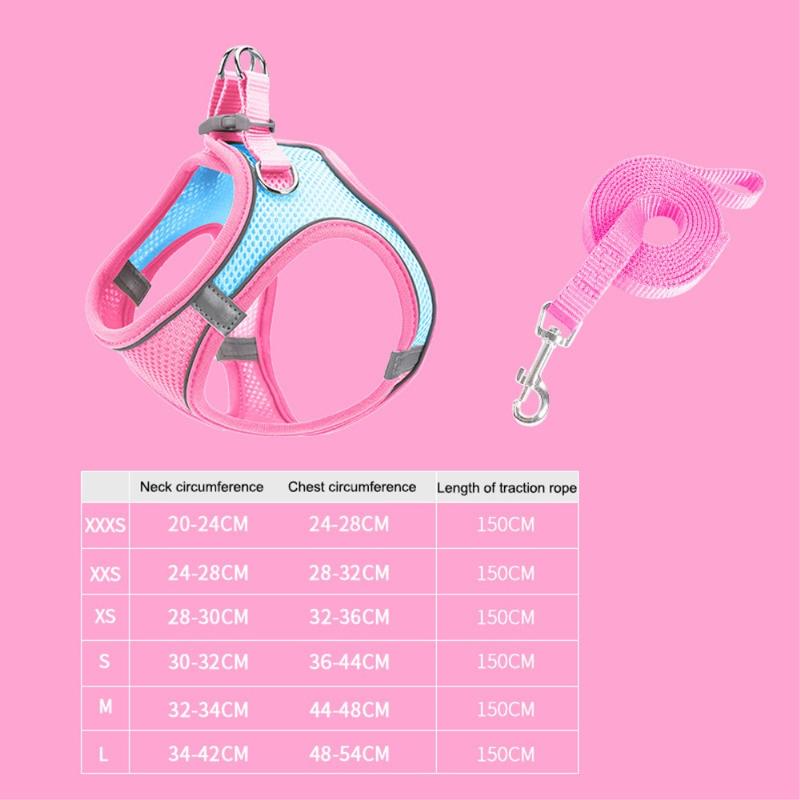Reflekterande katt-/hundsele med koppel / väst i ventilerande mesh för husdjur