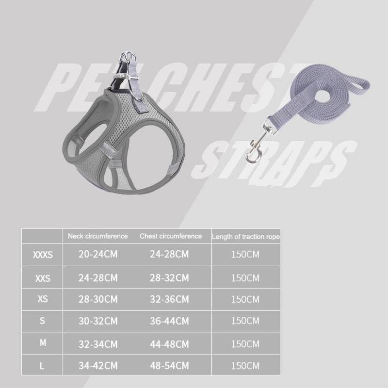 Reflekterande katt-/hundsele med koppel / Andningsbar väst i mesh för husdjur
