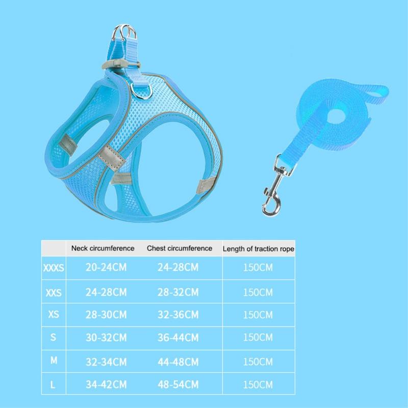 Reflekterande katt-/hundsele med koppel / väst i ventilerande mesh för husdjur