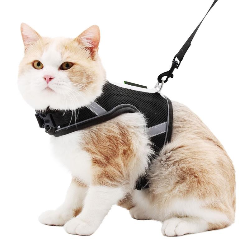 Reflekterande vadderad djursele med handtag och koppel för hund, katt