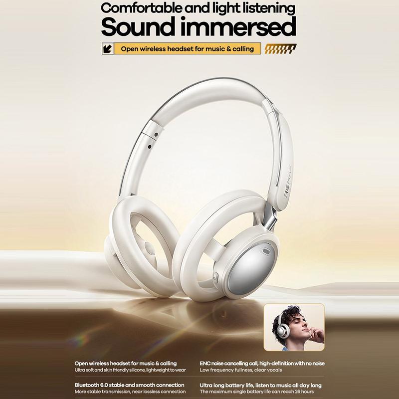 Njut av bekväm vardagslyssning och tydligare samtal med de trådlösa hörlurarna REMAX RB-870. Den öppna designen känns lätt och andas för lång användning, vilket gör dem till ett utmärkt val för arbetsdagar, pendling och avslappnad lyssning. Med Bluetooth 6.0 får du en stabil anslutning på upp till 10 m, medan ENC brusreducering hjälper till att minska omgivande ljud så att din röst hörs tydligare vid samtal. USB-C-laddning gör det bekvämt, och en full laddning tar cirka 2 timmar - med upp till 30 timmars samtalstid och 100 timmars standby så att du kan hålla kontakten längre utan att batteriet belastas.