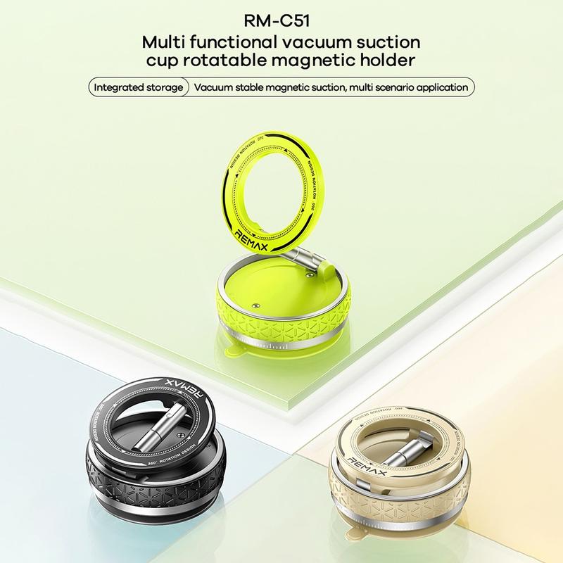 REMAX RM-C51 3-axlig magnetisk telefonhållare - vakuumlåsande sugkoppshållare för bil, hem och resa