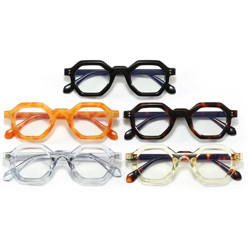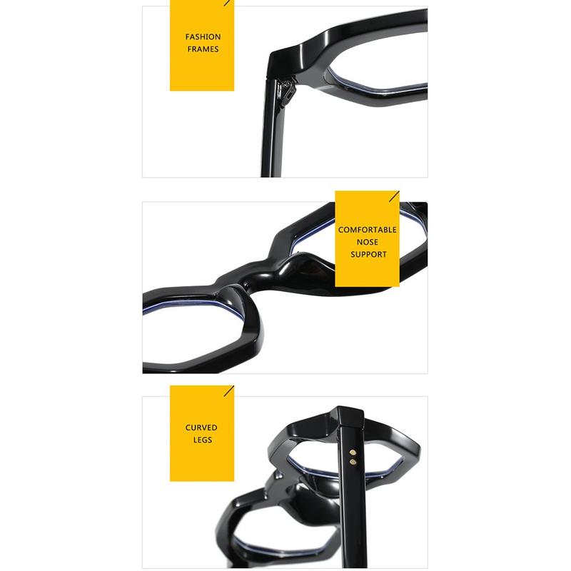 Dessa retro polygonglasögon kombinerar modeinriktad design med viktigt ögonskydd mot blått ljus. Genom att lindra obehag i samband med skärmtid hjälper de till att öka produktiviteten, minska huvudvärk och bibehålla visuell klarhet. Deras lätta konstruktion och integrerade näskuddar garanterar också timmar av bekvämt slitage, vilket gör dem till ett bekvämt tillskott i ditt dagliga liv.
