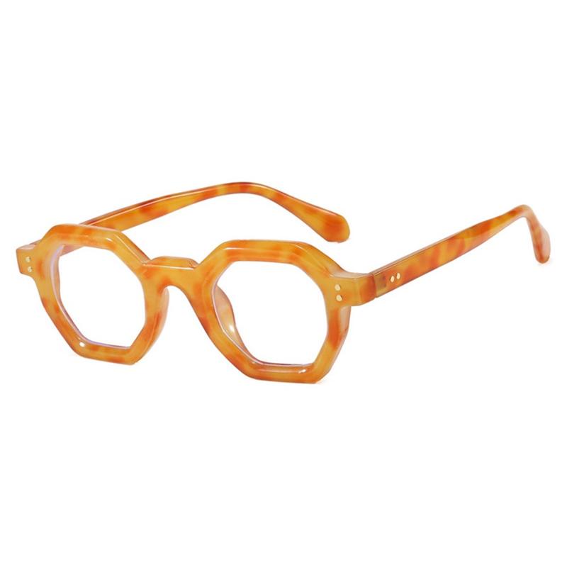 Gör ett djärvt stiluttryck samtidigt som du skyddar dina ögon från digital trötthet med dessa Retro Polygon Blue Light Blocking Eyeglasses. De unika, polygonformade bågarna ger en vintagekänsla, medan de integrerade näskuddarna och de halkfria skalmarna garanterar bekväm användning under hela dagen. Oavsett om du arbetar, spelar eller bara uppdaterar dig på sociala medier, ger de här glasögonen både mode och funktion.