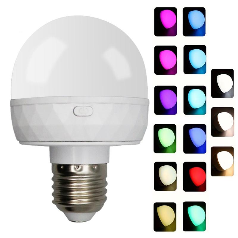 RGB LED-glödlampa med 3600 mAh batteri – fjärrkontroll, steglös dimning och avtagbar E27-sockel