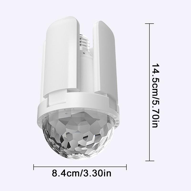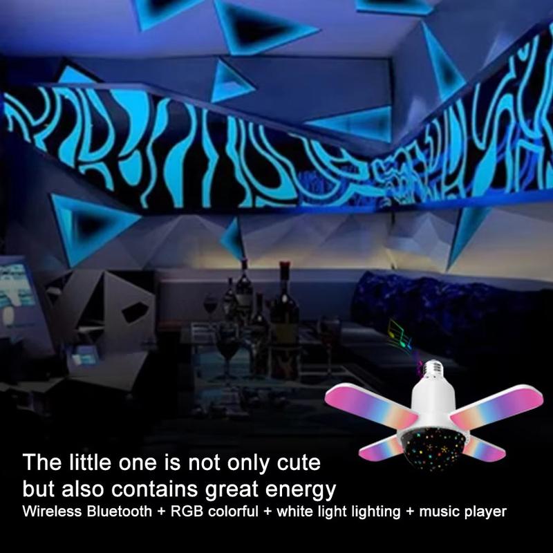 Denna Bluetooth-musiklampa erbjuder exceptionell mångsidighet genom att kombinera hög ljusstyrka, uppslukande RGB-effekter och trådlöst ljud i en enda enhet. Dess deformerbara fyrbladiga design ger en bred, anpassningsbar belysning, medan E27-skruvstrukturen möjliggör omedelbar uppgradering till alla rum utan verktyg. Oavsett om det gäller stämning, underhållning eller stark daglig belysning är det ett praktiskt och roligt tillskott till ditt hem.