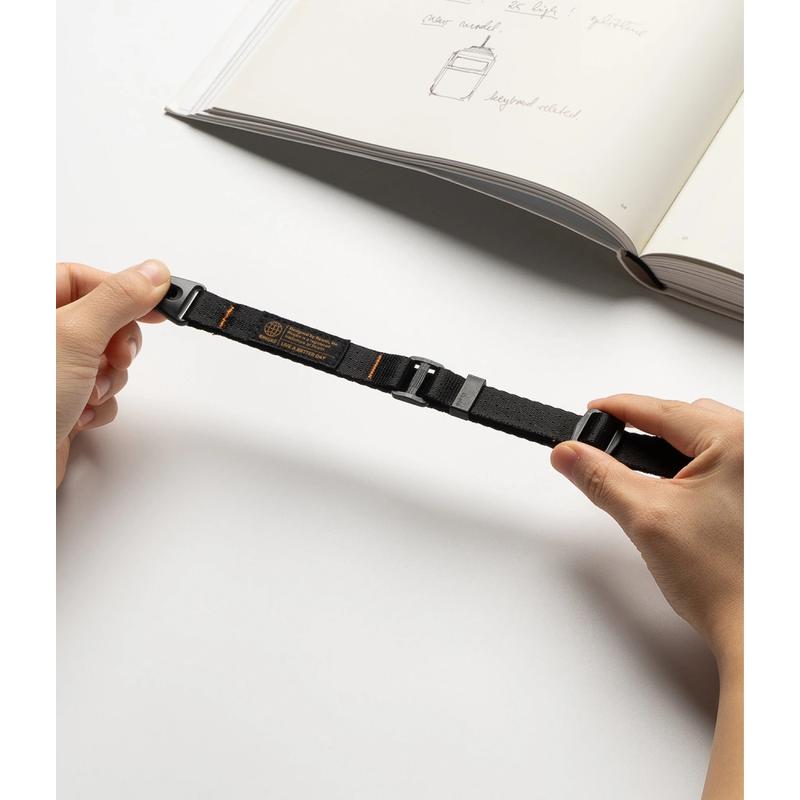 Den är tillverkad av stark nylon och kombinerar hållbarhet med lättviktig komfort för daglig användning, resor, pendling och aktiva utflykter. Den justerbara längden gör det enkelt att anpassa passformen efter dina önskemål, medan det robusta fästsystemet i polykarbonat ger en pålitlig anslutning och möjliggör kompatibilitet med andra utbytbara Ringke-remmar.