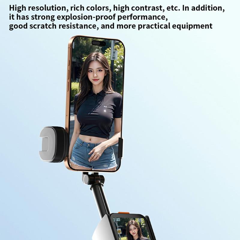 Den inbyggda 2,0-tums HD-skärmen (240×320 upplösning) ger förhandsgranskning i realtid från telefonens bakre kamera, vilket eliminerar blinda fläckar och säkerställer perfekt inramning. Detta ger en professionell touch till dina foton och videor.