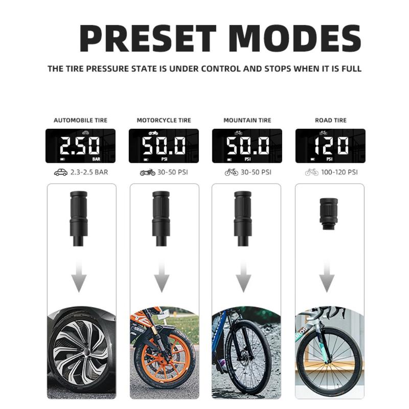 Den kan användas för att pumpa upp olika produkter som behöver pumpas upp, t.ex. bildäck, cykeldäck, motorcykeldäck, bollar etc., med ett brett spektrum av användningsområden