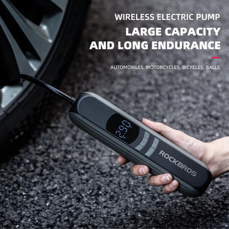 ROCKBROS A10 luftpump för bilmotorcykelcykeldäck Bärbar trådlös elektrisk däckpump för fordon med LED-ljus