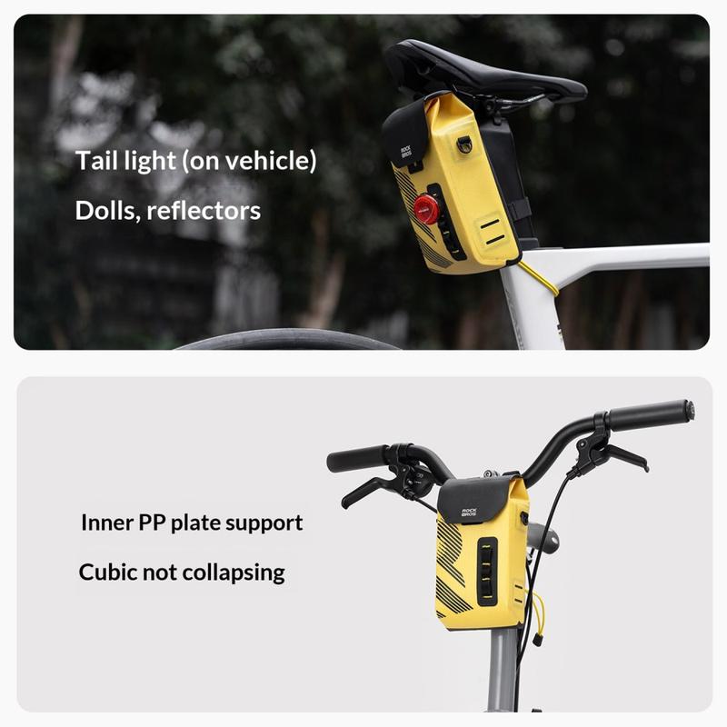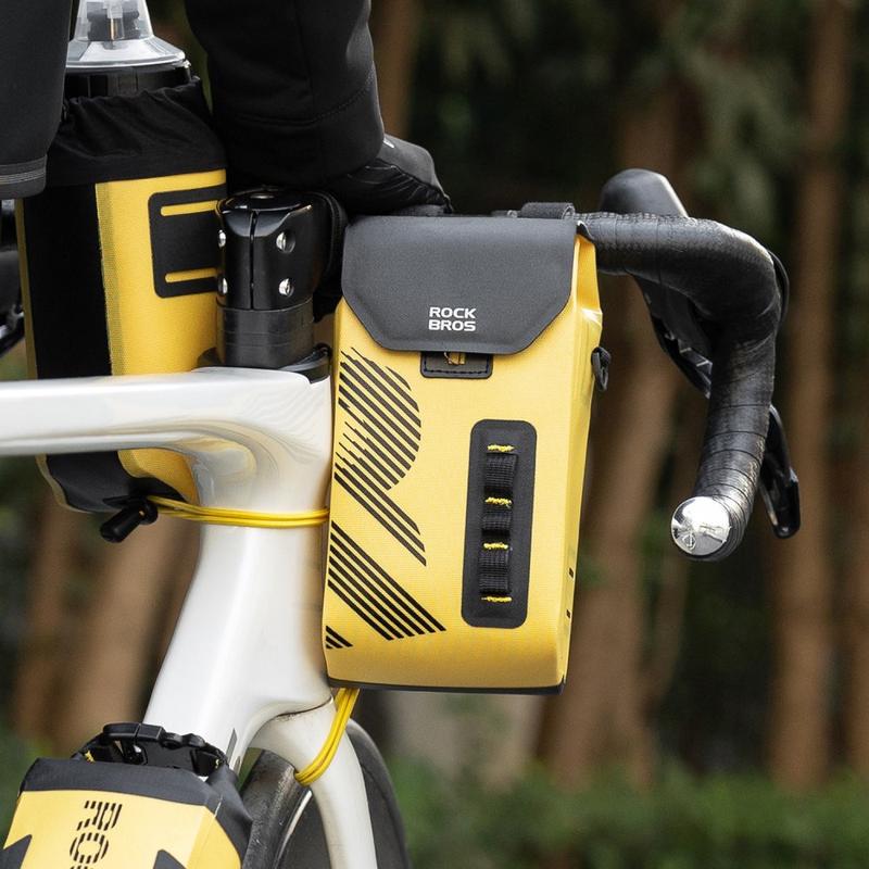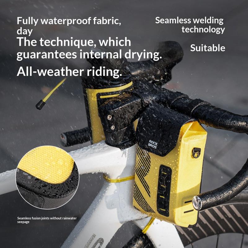 Bär med dig dina viktigaste saker säkert i alla väder med ROCKBROS AS-160-styretväska. Den är gjord för landsvägscyklar, mountainbikes och hopfällbara cyklar och har vattentätt tyg med sömlös svetsning som håller dina saker torra när det regnar. Det magnetiska locket gör att du snabbt kan komma åt innehållet med en hand medan du cyklar, och den strukturerade insidan med PP-skivstöd håller väskan stabil och välformad även när den är fullpackad. En avtagbar axelrem gör att du kan byta från cykelväska till vardagsväska på några sekunder.