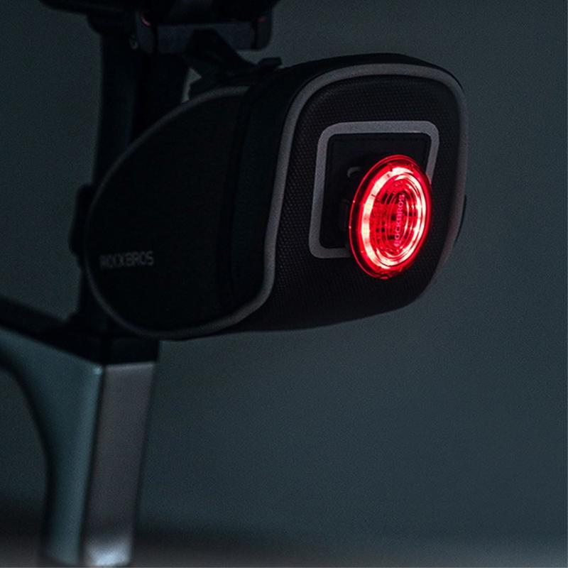 En baklykta (ingår ej) kan hängas på baksidan, med reflekterande remsa, vilket ger en tydlig varning vid cykling i mörker