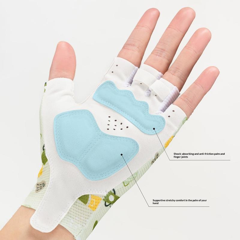 Rockbros Cykelhandskar för barn med tecknat mönster / Ventilerade halvfingrade cykelhandskar med stötdämpande handflata