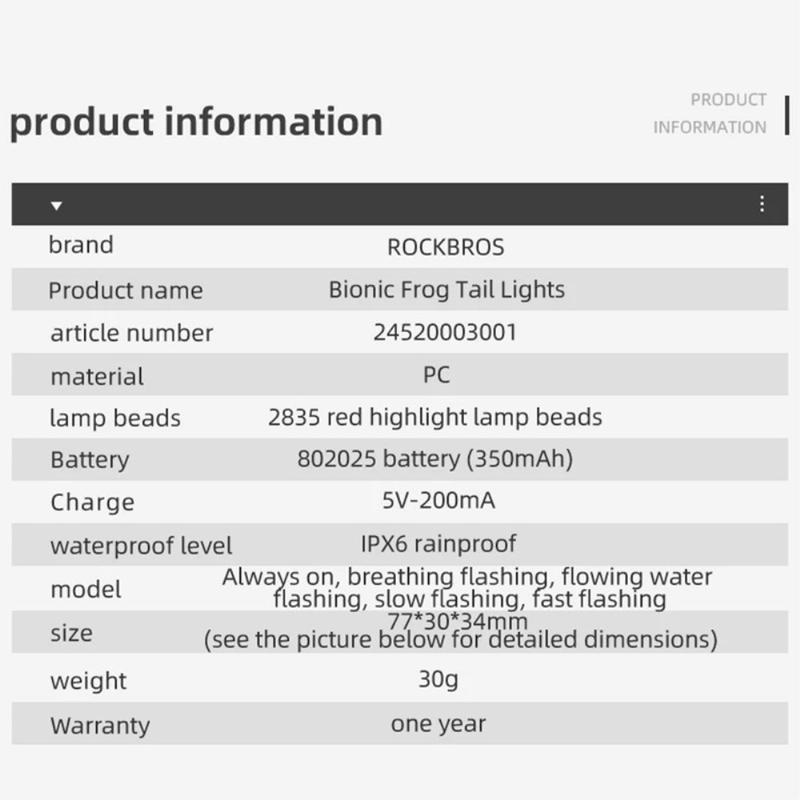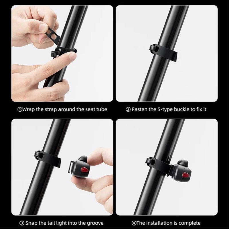 Cykelbromsljuset är tillverkat av IPX6 vattentätt material, vilket möjliggör säker användning även i kraftigt regn. Den lätta och tåliga lampan kan monteras på mountainbikes, landsvägscyklar och barncyklar. Lätt att montera med silikonbandet som har fyra öppningar som passar runt de flesta styren och sadelstolpar