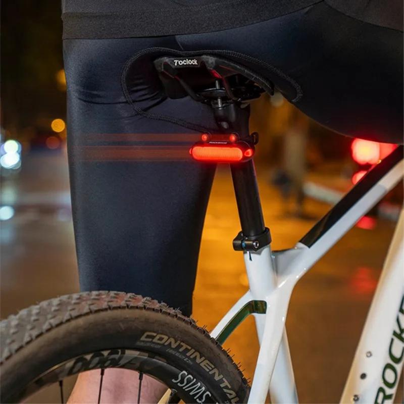 Baklyktan är utrustad med en rörelsesensor och en ljussensor som aktiverar ett ljusläge i 2 sekunder när cykeln bromsar, vilket effektivt varnar bakomvarande förare