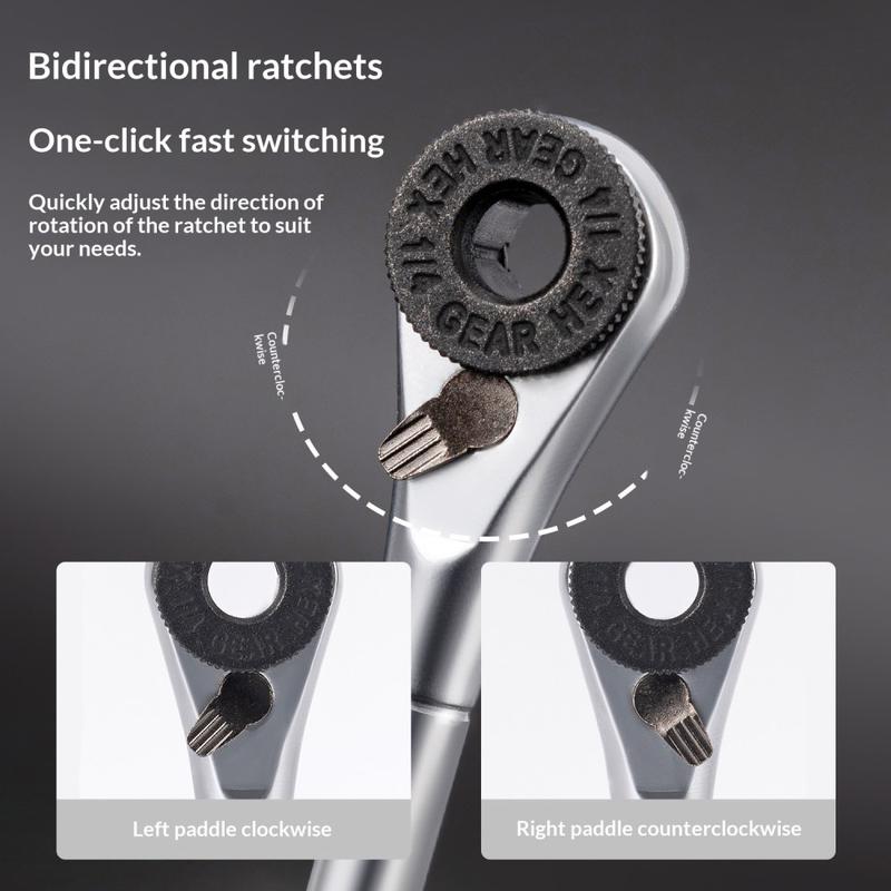 Rockbros TG-8601 har en innovativ dubbelriktad spärrmekanism som gör att du kan dra åt eller lossa fästelement smidigt utan att behöva flytta verktyget, vilket sparar tid och kraft vid cykelunderhåll.