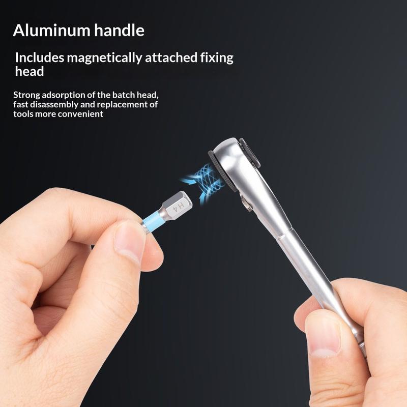 En magnetisk snabbkopplingsstång möjliggör snabba och säkra bitbyten, vilket förbättrar arbetsflödeseffektiviteten och minskar risken för att små delar tappas under reparationer.