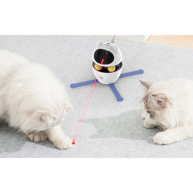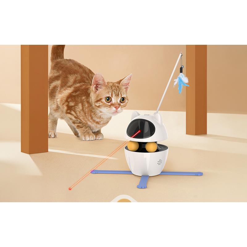 - Tredubbla spellägen: Innehåller en laserpekare, en roterande fjäderstav och rullande bollar som tillgodoser din katts jakt-, hopp- och jaktinstinkter.