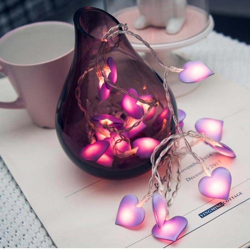 - 20 hjärt-LED (ABS) - varje genomskinligt skal sprider en varm rosa nyans; valfri blixtinställning för festglitter.