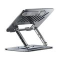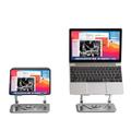 Roterande stativ för bärbar dator i kolstål med två armar och magnetisk telefonhållare - höjdjusterbar hållare för bärbar dator och surfplatta (upp till 15,6")