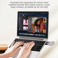 Stativet är tillverkat av hållbart kolstål och stöder bärbara datorer, surfplattor och ritbord upp till 15,6 tum. Den roterande designen med dubbla armar ger flexibel positionering, vilket gör det lämpligt för kontor, hem eller kreativ studio.