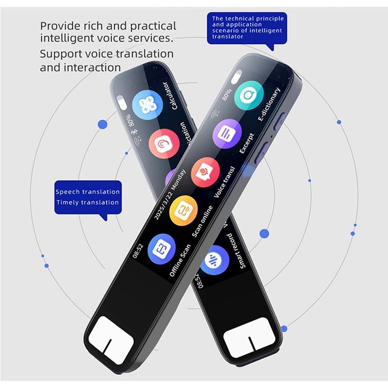 Bryt språkbarriärer med S08B Smart Voice Translator, en kompakt och kraftfull enhet som är utformad för resenärer, studenter och yrkesverksamma. Med en kapacitiv pekskärm på 3,69 tum ger denna översättare smidig och tydlig interaktion. Med 134 språk som stöds erbjuder den röstöversättning i realtid, fotoöversättning och skanningsöversättning för att täcka nästan alla situationer. Utrustad med en fyrkärnig processor, 1 GB RAM och 8 GB lagringsutrymme (expanderbart upp till 32 GB) ger den tillförlitlig prestanda för både översättning och inlärning. Den är lätt och bärbar och ryms lätt i fickan, vilket gör den till det ultimata verktyget för kommunikation var som helst i världen.