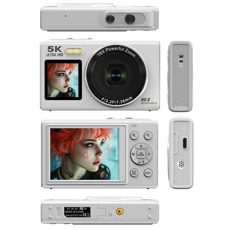 S150 Pro 5K digitalkamera med dubbla skärmar - 80 MP, 18x zoom, Wi-Fi, 32GB kort ingår