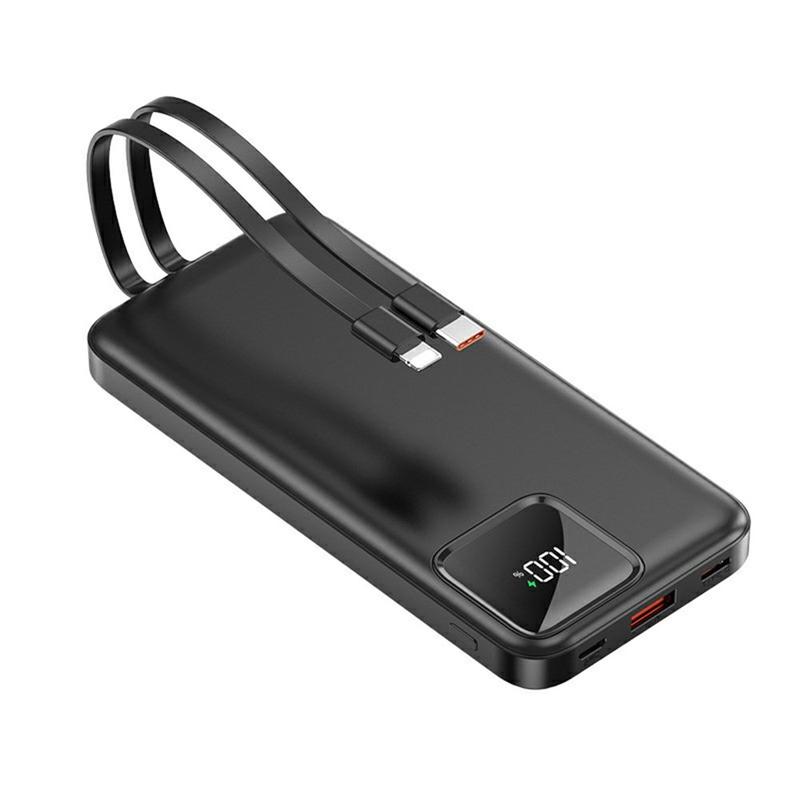 S38N Slim 10000mAh Powerbank - 22.5W snabbladdning med inbyggda USB-C- och Lightning-kablar, digital batteridisplay, multiportutgång