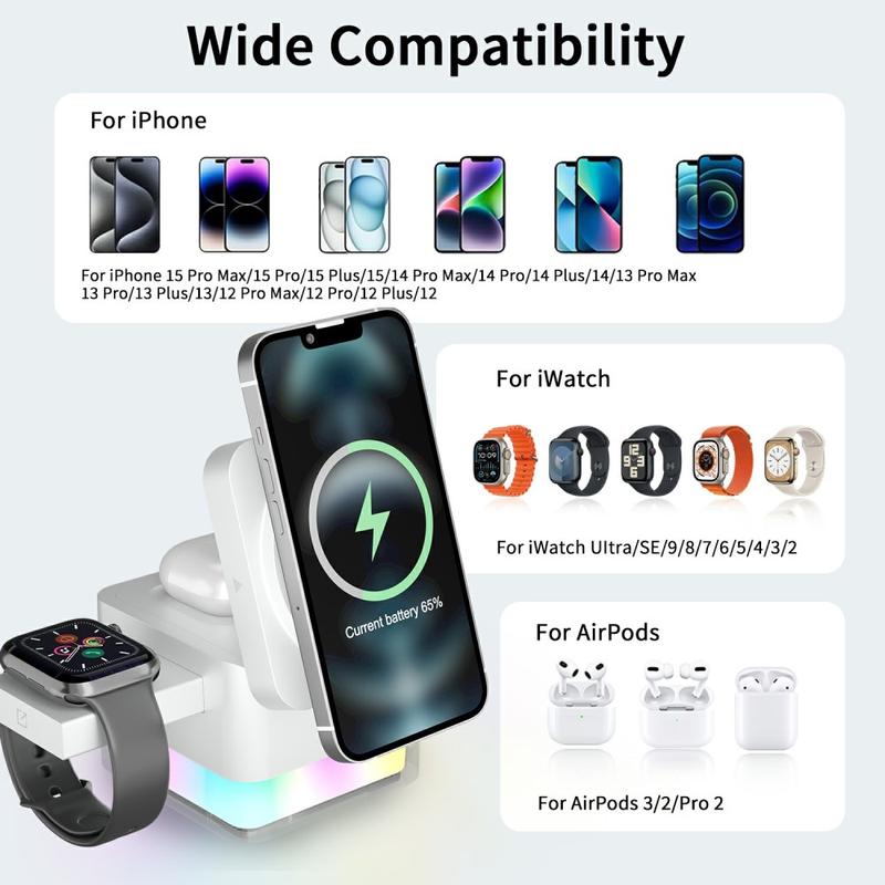 S6 3-i-1 magnetisk trådlös laddningsstation - hopfällbar laddningsstation med RGB-belysning för iPhone, Apple Watch och AirPods