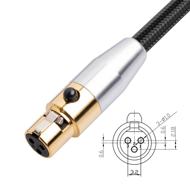 - Mini XLR (3-polig) hona till XLR (3-polig) hane för mångsidiga ljudanslutningar