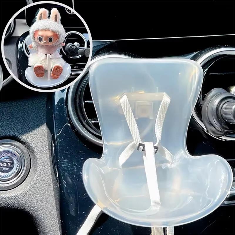 Monster Doll Mini Safety bilbarnstol - Clip-On luftventilationsfäste för 17cm plyschfigurer, inbyggt säkerhetsbälte, inredningsdekor