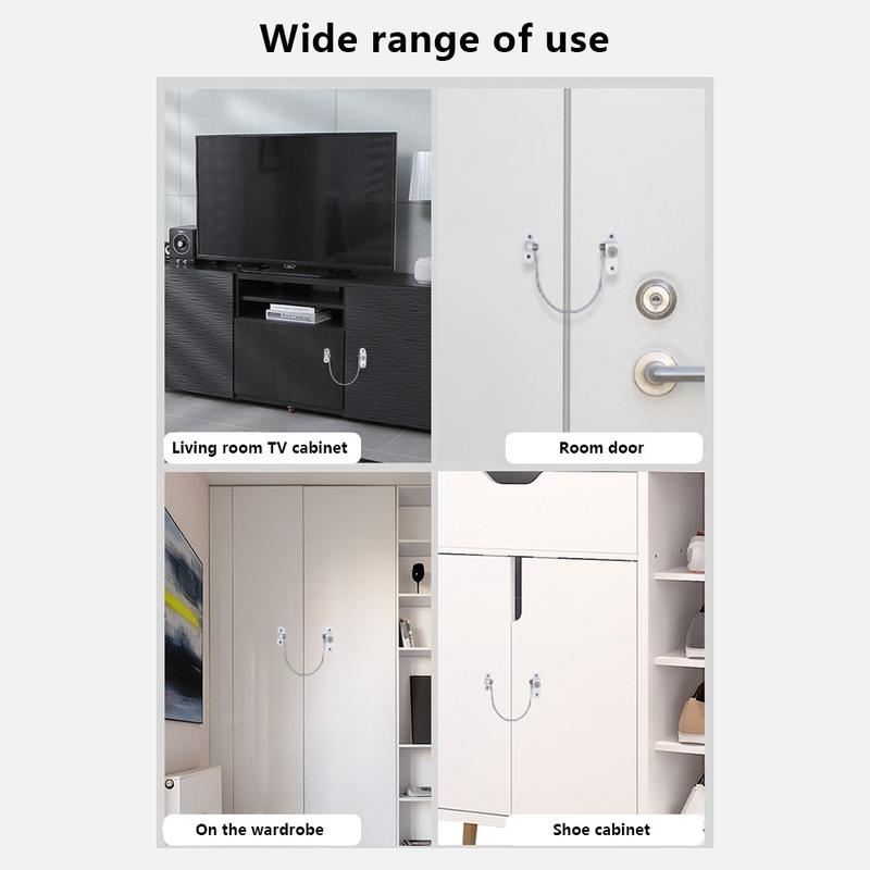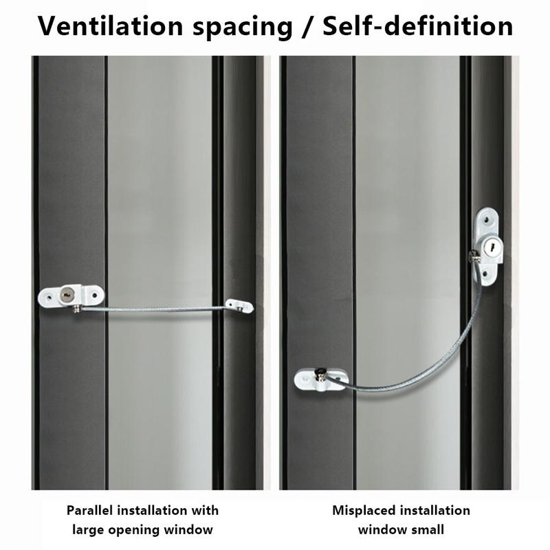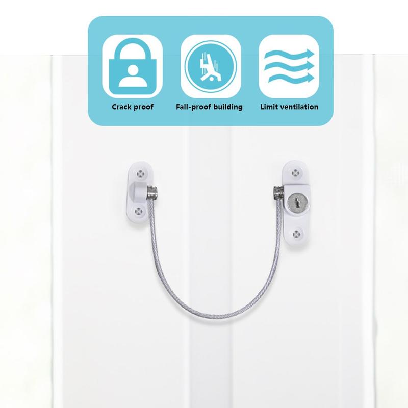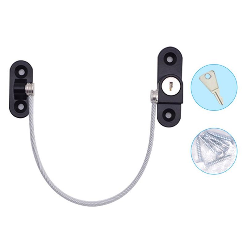 Säkerhetsfäste med kabel för fönster, dörrar och skåp - zinklegering med stålvajer