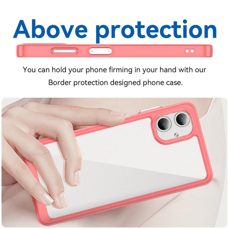 - TIllverkad med dubbla material - genomskinlig bakpanel i akryl kombinerat med TPU-kanter