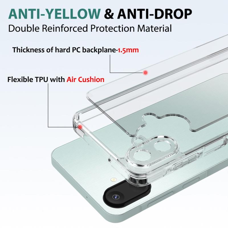 Detta tillbehör använder en kombination av akryl och TPU för att hålla din smartphone i bästa skick. Samtidigt ser förstärkta, stötabsorberande hörn till att förhindra skador från fall, medan den genomskinliga designen visar upp den vackra designen av din Samsung Galaxy A07 4G.