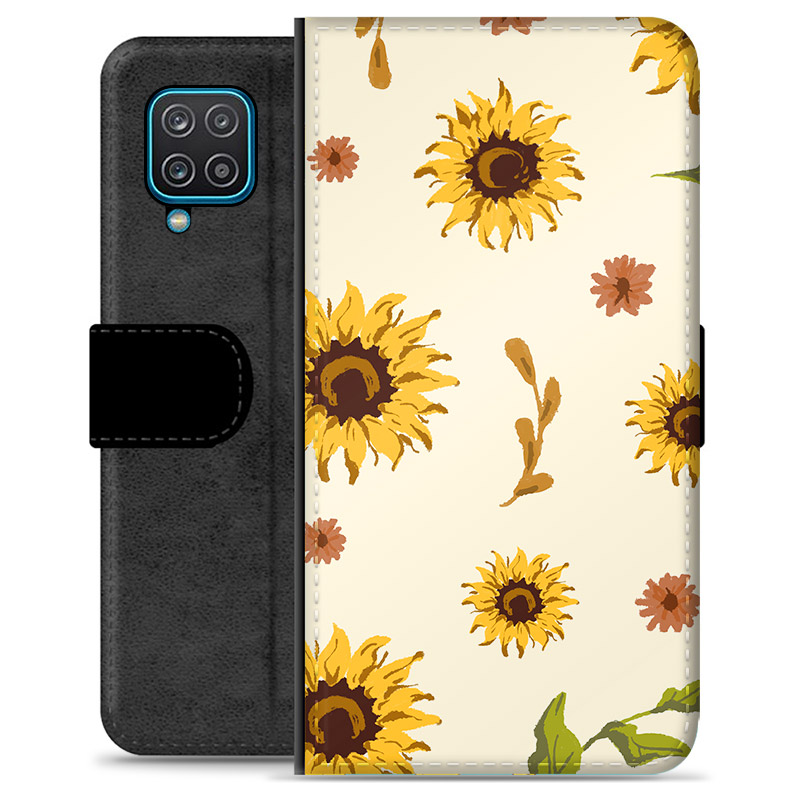 Samsung Galaxy A12 Premium Plånboksfodral - Solrosor