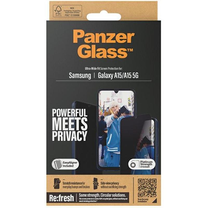 PanzerGlass Ultra-Wide Fit Privacy EasyAligner AntiBacterial Härdat Glas Skärmskydd till Samsung Galaxy A15